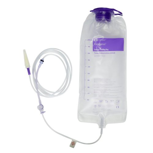 La bolsa de alimentación Kangaroo está diseñada para facilitar la administración de nutrición enteral por gravedad, conectándose a una sonda a través de la cual se suministra la nutrición al paciente. Es compatible tanto con alimentos preenvasados como con latas de alimentación adaptadas para este método.