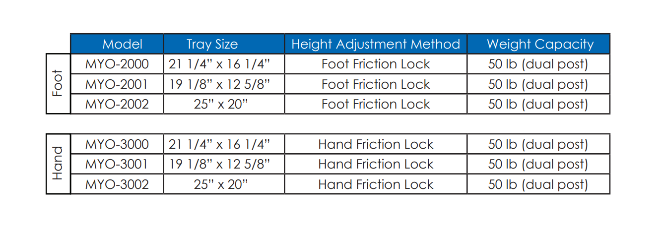MAC Medical se enorgullece de presentar nuestra familia recientemente rediseñada de soportes Mayo, diseñados para mejorar el rendimiento, la durabilidad y la facilidad de uso.