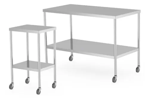 Las mesas de trabajo de acero inoxidable ofrecen una superficie higiénica y no porosa, resistente a las bacterias y fácil de desinfectar después de cada uso, lo que las hace ideales para entornos limpios. Las mesas de trabajo MAC Medical están diseñadas para una mayor durabilidad.